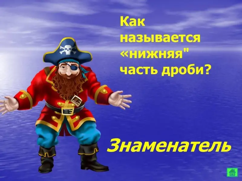 - Как называется «нижняя» часть дроби? (знаменатель)