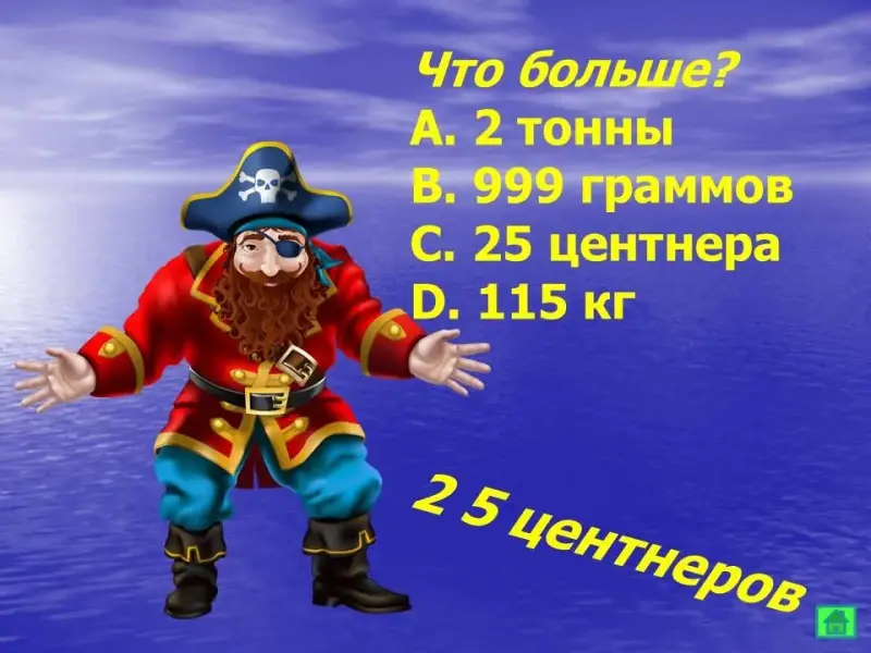 - Что больше: 2 тонны, 999 граммов, 25 центнеров, 115 килограммов? (2 центнера)