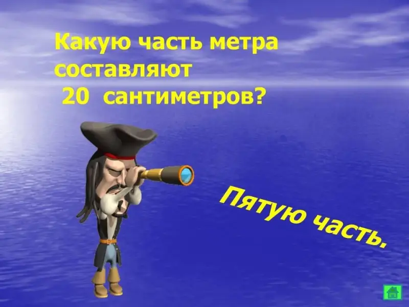 - Какую часть метра составляют 20 сантиметров? (1/5)