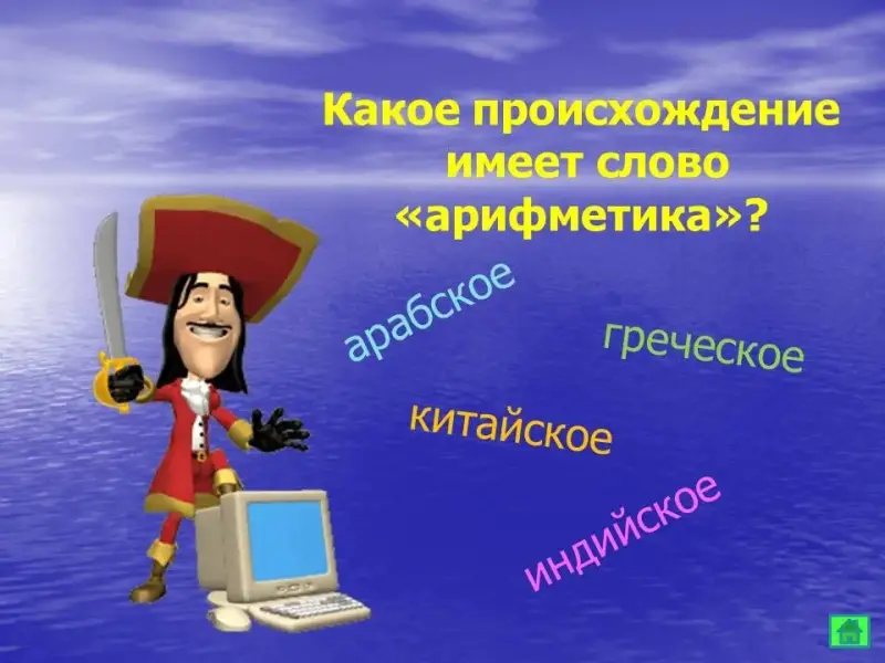 - Какое происхождение имеет слово «арифметика»: арабское, греческое, китайское, индийское? (греческое)