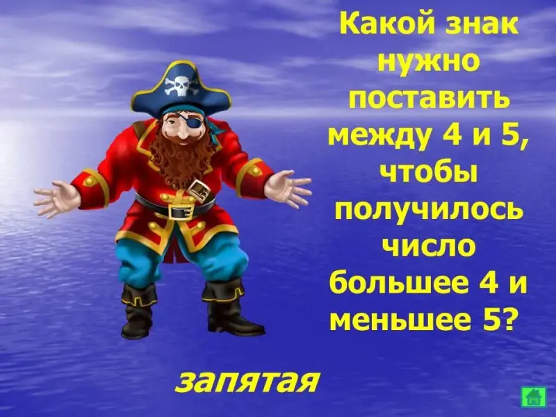 - Какой знак нужно поставить между 4 и 5, чтобы получилось число большее 4 и меньшее 5? (запятая)