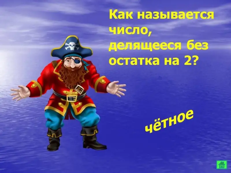 - Как называется число, делящееся без остатка на 2? (чётное)