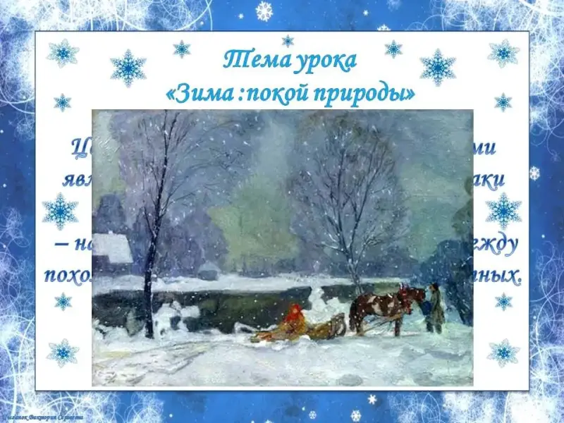 - Сформулируйте тему урока? Зима - покой природы.