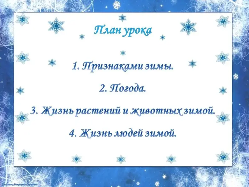 - Перечислите основные признаки зимы.