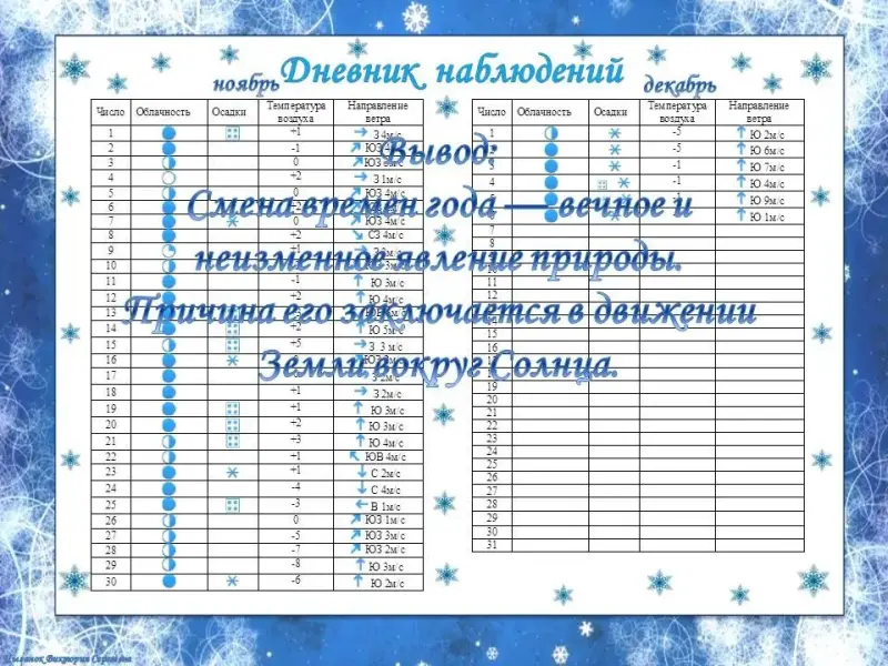 - Сравните погоду начала ноября и декабря?