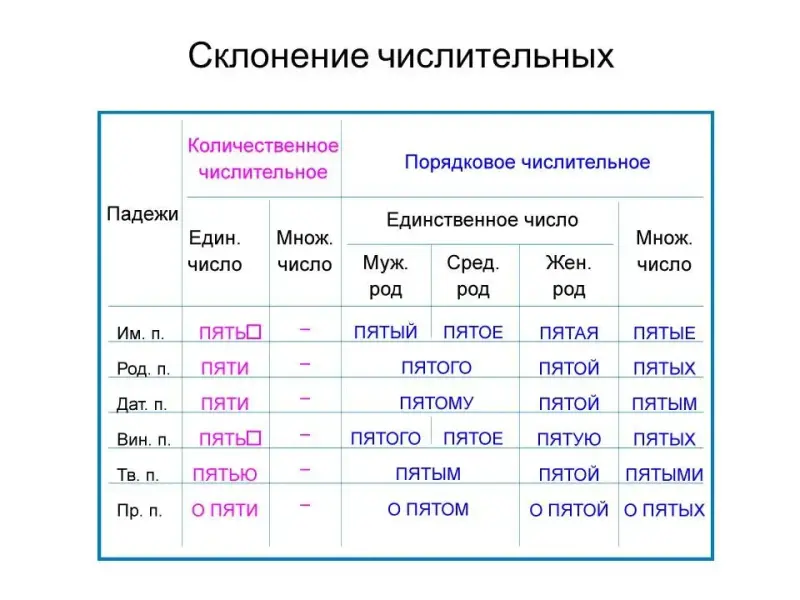 Е) Какие числительные склоняются как существительные 3-го склонения?