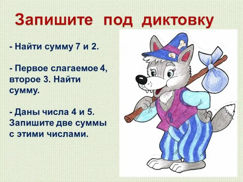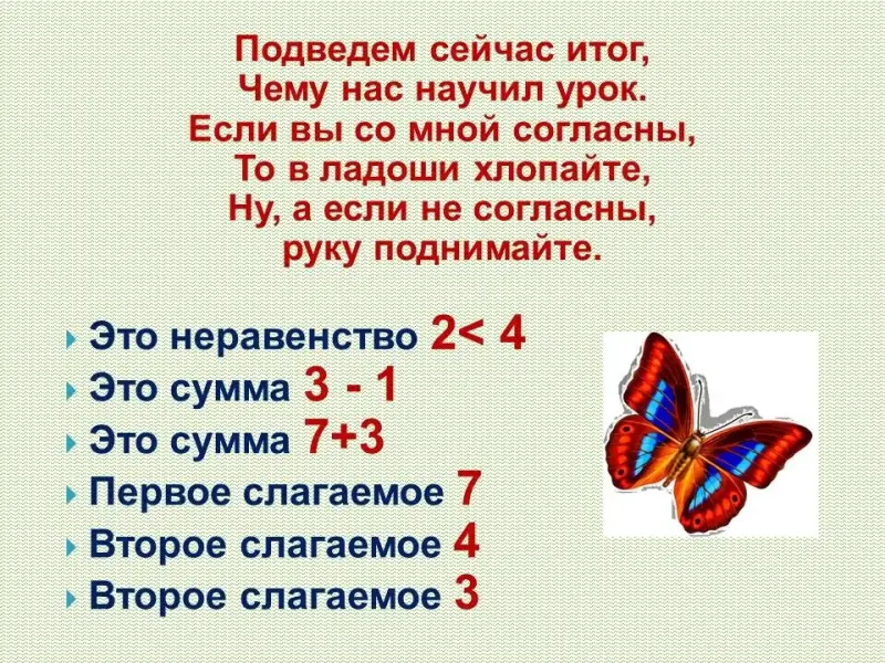 Урок математики в 1-м классе "Слагаемые. Сумма"