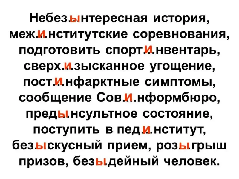 Правописание Ы/И в корне слова после приставок