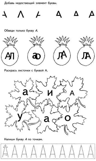 Посмотрите внимательно на задание 1. Буква А сломалась. Допишите недостающий элемент буквы.
