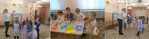 Дети входят, здороваются. Дефектолог говорит детям, что занятие сегодня необычное, и посмотреть его пришло много гостей.