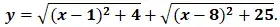 расстояние от той же точки оси абсцисс до одной из точек С(8, 5) или (8, -5). Итак, значение функции y(x) представляет собой сумму расстояний ВА + АС = А + АС = А + А (в силу симметричности точек В и