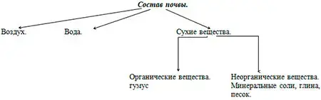 При ознакомлении учащихся с почвой на уроке «Что такое почва?» показываем (демонстрационно и лабораторно) следующее: 1) в почве есть воздух и вода; 2) почва состоит из сгораемых (органических) веществ - перегноя (гумуса) и несгораемых (неорганических) веществ: глины, песка, минеральных солей.