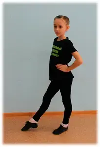Работа ног: на счет 1 - отводим в сторону на каблук правую ногу, на счет 2 - приставляем правую ногу к левой ноге, на счет 3 - отводим в сторону на каблук левую ногу, и на счет 4- приставляем левую ногу к правой. Руки и ноги начинают двигаться одновременно.