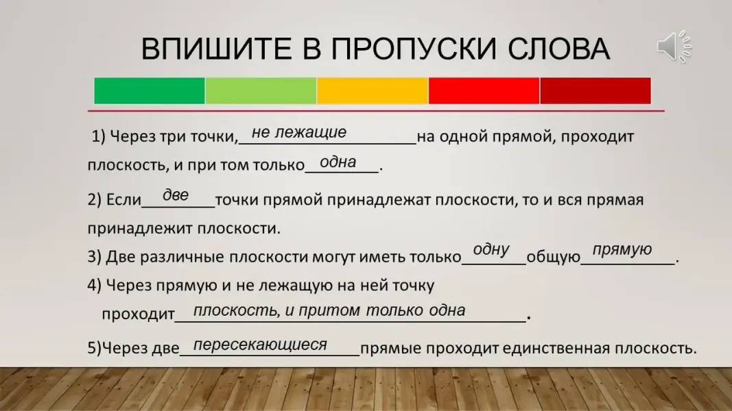 Преподаватель сообщает, что перед тем, как начать урок, необходимо вспомнить, что изучалось ранее. Для этого задает вопросы. На прошлом уроке мы приступили к изучению нового раздела геометрии. Как он называется? (Стереометрия). Что изучают в стереометрии? (Тела в пространстве). Каковы основные фигуры стереометрии? (Точка, прямая, плоскость).