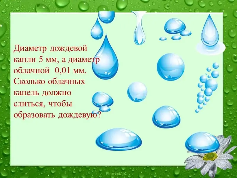 Мы внимательно слушали сообщения географов и поэтому предлагаем задачу о каплях.