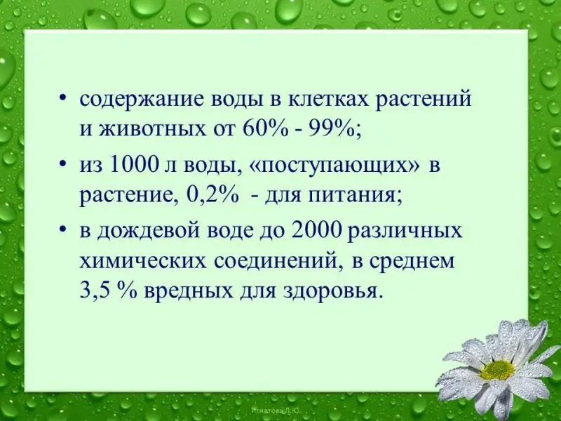 Учащийся: Дожди необходимы для всего живого на земле. Содержание воды в клетках растений и животных колеблется от 60% - 99%.
