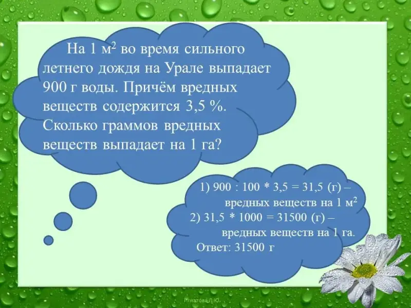 3,5 % вредных веществ в дождевой воде! Подумать только. Что это означает с математической точки зрения?