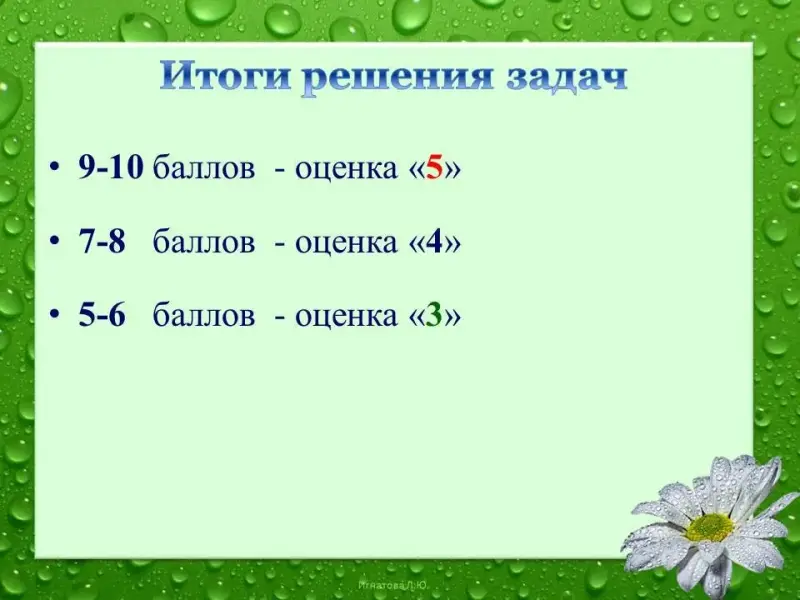 - Поставим за решение задач себе оценку.