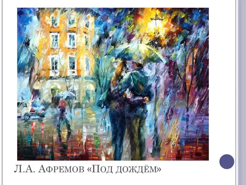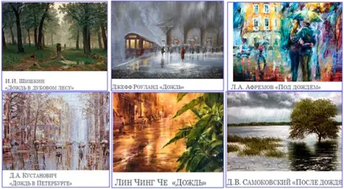 Учащийся: Для художников картины дождя являются одним из любимых сюжетов: привычные пейзажи меняются до неузнаваемости, появляются новые краски и ощущения.