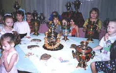 Ребята пока мы с вами украшали и рассматривали пряники, закипел самовар. Приглашаю всех к столу пить чай с пряниками медовыми. Приятного аппетита!
