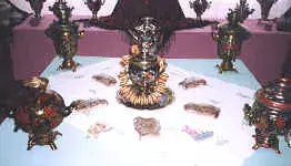 При знакомстве детей с декоративно-прикладным искусством использую в своей работе богатый зрительный ряд. Это в первую очередь подлинные предметы народного искусства. Организованные выставки интересны своим разнообразием. Это и выставка самоваров, хохломы, гжели, дымковской игрушки, матрешки, шкатулок. Эти выставки с большой охотой посещают дети, и их родители, и педагоги.