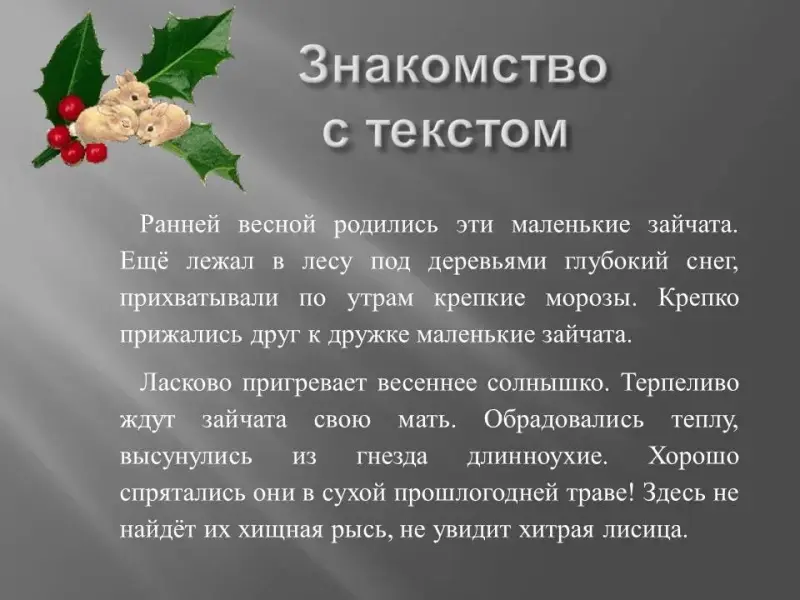 Учитель. Вернёмся к героям нашего текста - зайчатам. Как они подрастают?
