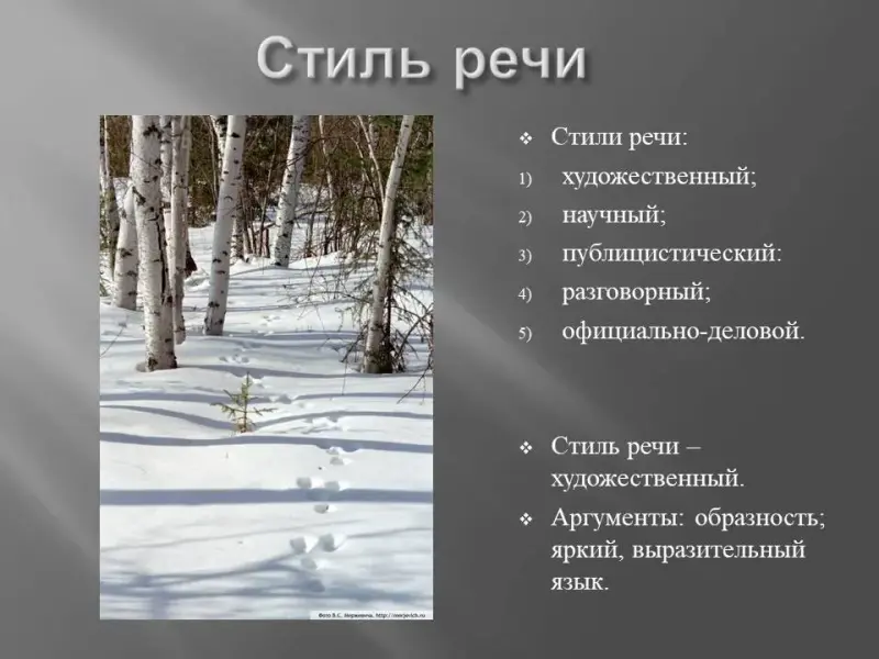 Учитель. К какому стилю относится предложенный текст: художественному, научному, публицистическому, официально - деловому, разговорному? (Слайд 15)