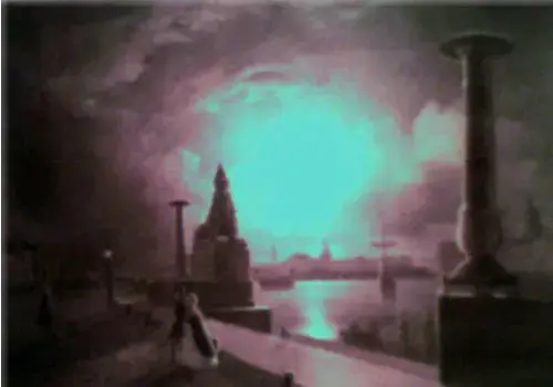 На третьей мы видим идущих по ночным, безлюдным улицам города девушку и юношу, в которых несомненно узнаем героев повести Настеньку и Мечтателя.