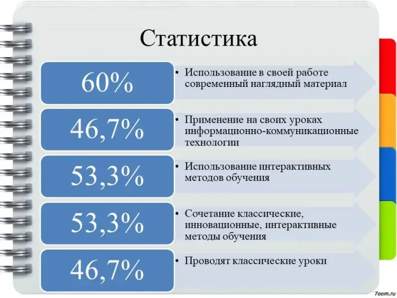 - 46,7% педагогов проводят классические уроки.