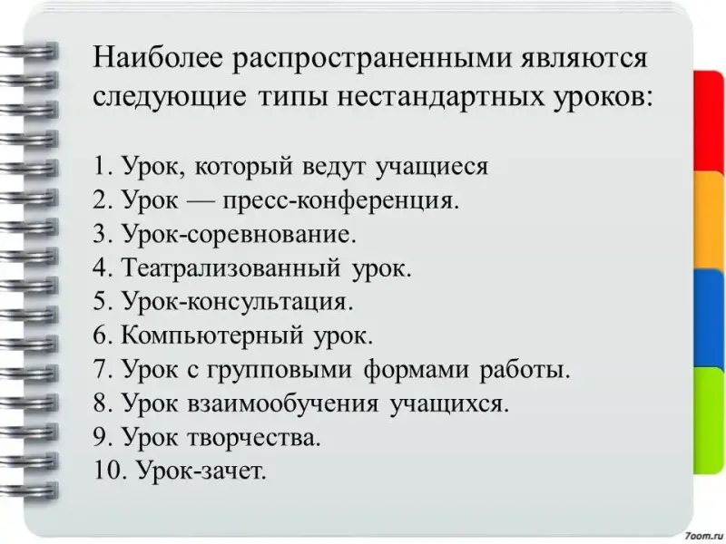 Наиболее распространенными являются следующие типы нестандартных уроков: