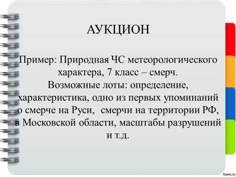 Пример: Природная ЧС метеорологического характера, 7 класс - смерч.