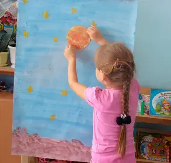 Дети создают коллаж «Космос и космические ракеты».