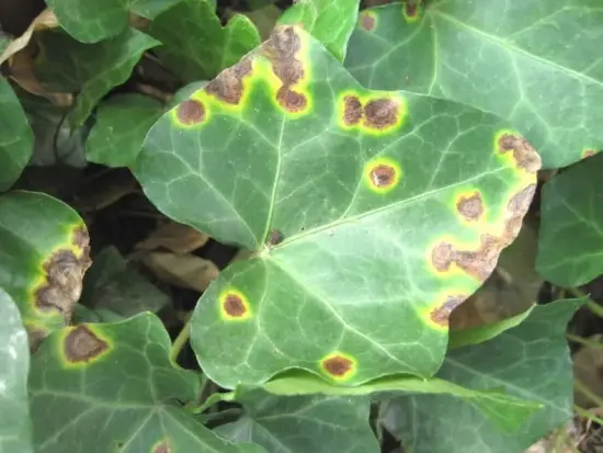Заболевание, характеризующееся появлением пятен - сначала желтых, затем коричневых, которые распространяются по всему листу. На их нижней стороне может развиваться мицелий спор. Когда видны первые симптомы, больные листья нужно удалить и применить фунгицид. Пятно появляется на ослабленных грибком растениях, которые были внесены вместе с новым цветком. Зараженные растения отделить и поставить в светлое место. Помещение, где стоят растения, следует регулярно проветривать.