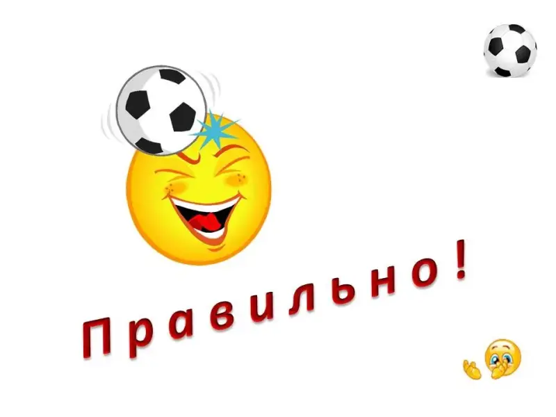 При ответе, нажимаем на кнопку-мяч напротив варианта ответа. Результат - моментальный. Если правильный ответ - то выходит слайд с аплодисментами, вы нажимаете на кнопку-мяч в правом верхнем углу и переходите к следующему вопросу. Если ответ неправильный - то выходите на другой слайд, и тоже жмёте на кнопку-мяч в правом верхнем углу, и возвращаетесь снова к этому вопросу для того, чтобы вторая команда дала вам свой вариант ответа. Если же и вторая команда ответила неправильно - то вы, снова, в третий раз, вернувшись к этому вопросу, уже сами нажимаете на правильный ответ и только потом переходите к следующему вопросу.