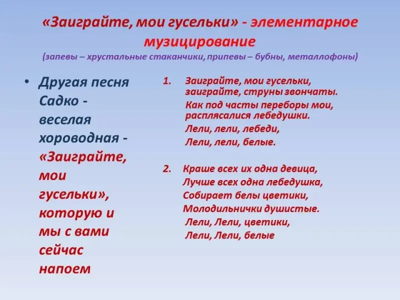Русская классическая музыка, устное народное творчество, песни, былины, гусли.