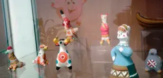 Муз.рук: Здравствуйте, ребята! Сегодня мы снова встретились в нашем Музее музыкальных инструментов. Посмотрите, какие красивые расписные игрушки здесь есть. Эти игрушки не простые, они музыкальные. Проходите в музыкальный зал и посмотрите!