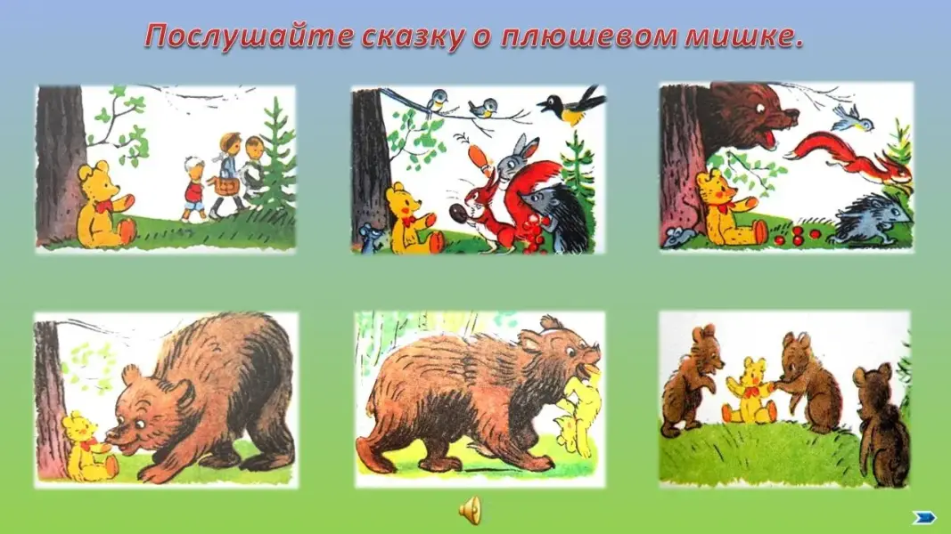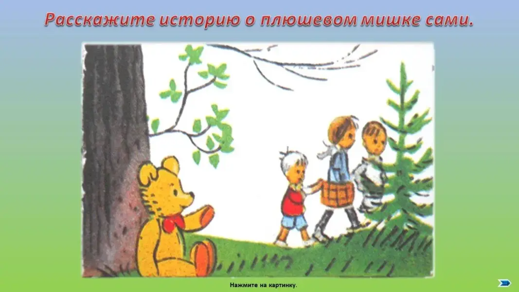 (Дети слушают сказку В. Сутеева «Находка», затем пересказывают его с опорой на картинки.)