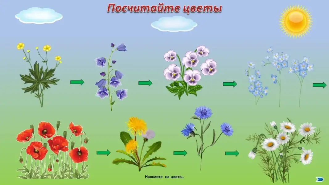 Логопед: - К какой красивой цветочной поляне мы пришли. Я предлагаю поиграть на этой полянке в игру «Есть - нет». Выберите для себя цветы. Первый игрок скажет, что есть у него на картинке. Например: «У меня есть две медуницы». Следующий игрок продолжит: «У меня нет двух медуниц, но есть пять гвоздик» и так далее по кругу.