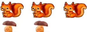 Посмотрите на картинку, белочек больше или грибов? (белочек больше, чем грибов). Как вы догадались? (белке не хватило грибочка).