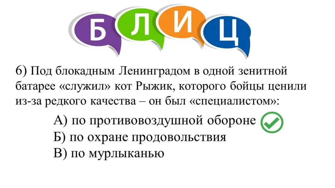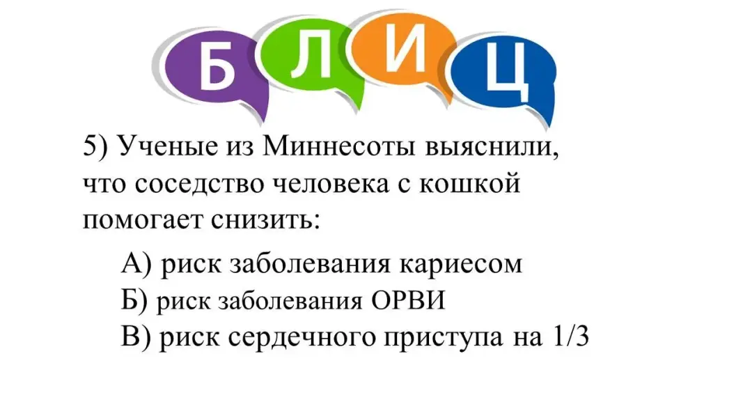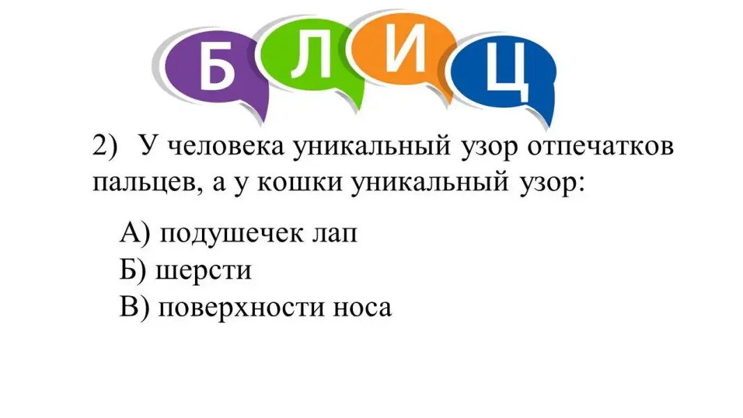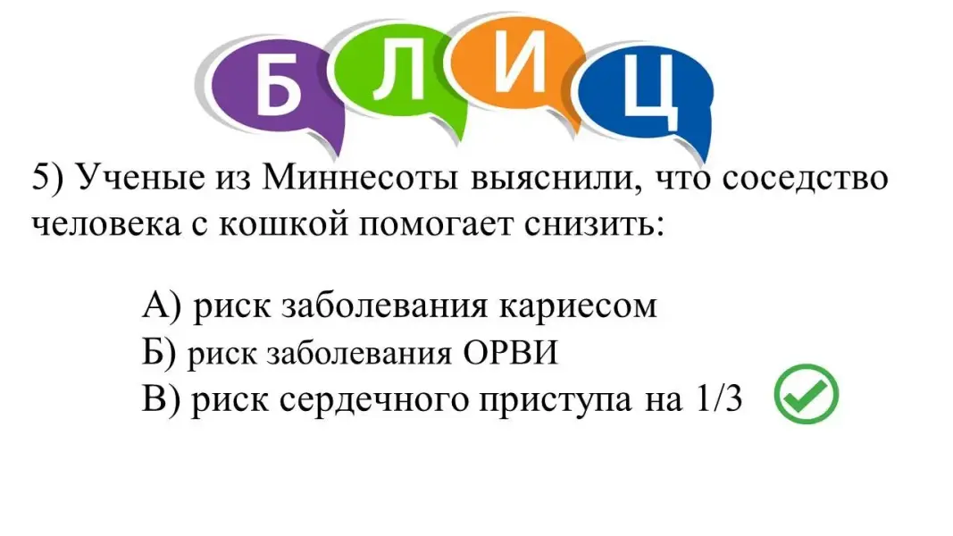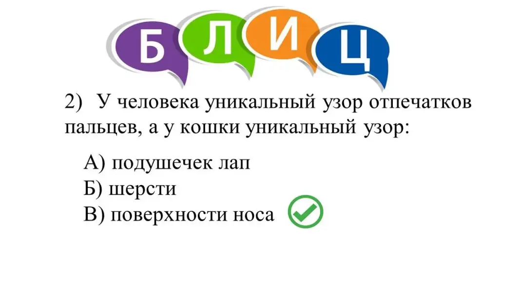 Предъявление ответов, проверка по слайду, объяснение ошибок с точки зрения биологии кошек как представителей отряда Хищных млекопитающих (с учётом возраста питомца).