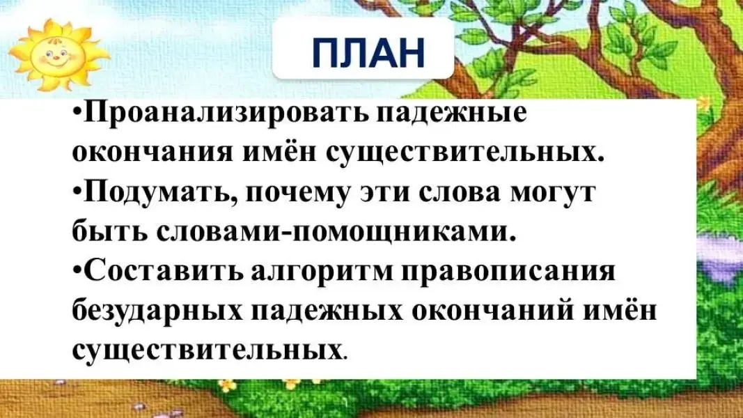 - Познакомить с алгоритмом правописания падежных окончаний имён существительных.