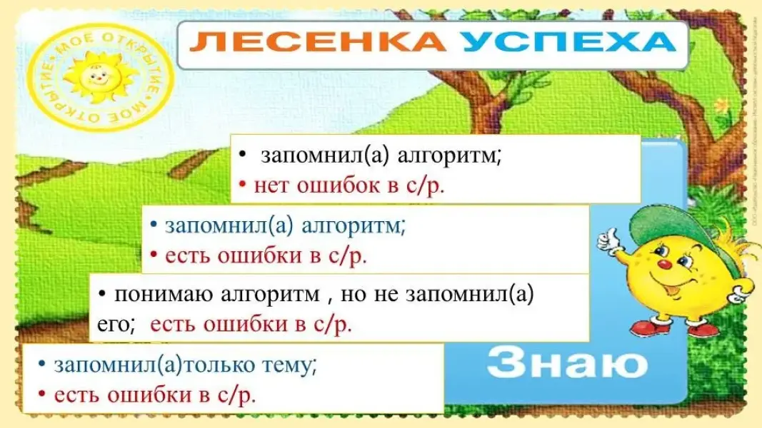 - Четвертая ступенька: запомнил тему, запомнил алгоритм, нет ошибок в самостоятельной работе, могу рассказать алгоритм другим.