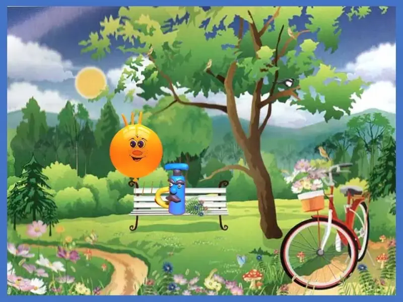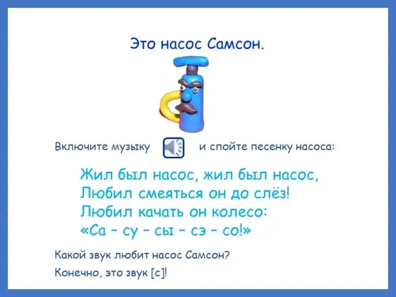 Насос Самсон и шарик Шурик стали друзьями. Им очень нравилось гулять по парку, дышать свежим воздухом и, сидя на скамеечке, повторять свои любимые слоги. (Слайд 17)