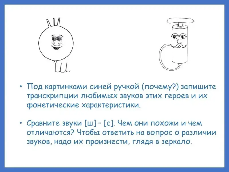 - Зарисуйте портреты наших героев и охарактеризуйте их любимые звуки (с опорой на таблицу) (Слайды 14-15)