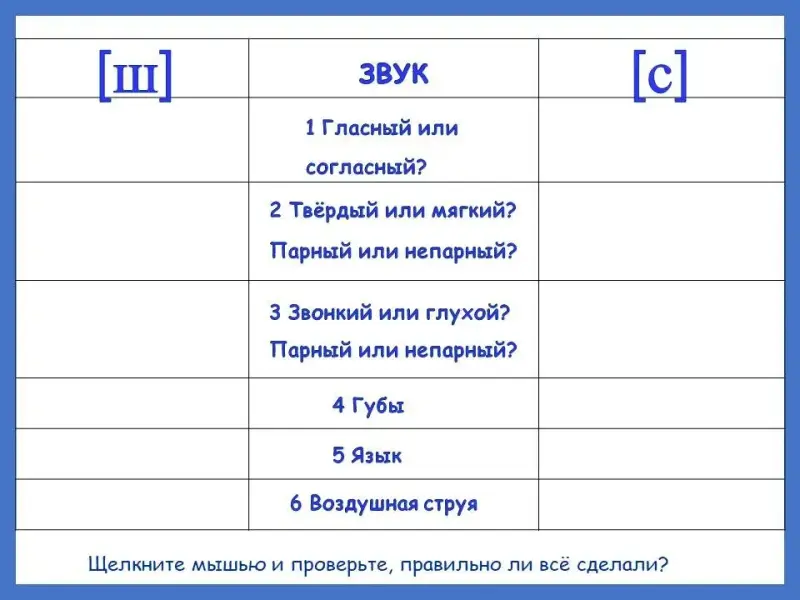 Таблица. Сравнение фонетических и артикуляционных характеристик звуков.