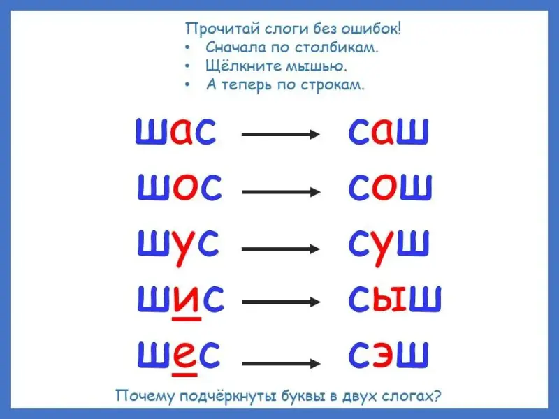 - ша, са - (са, ша), сы, ши - (ши, сы), … шутки - (сутки), крыша - …, каска - …, мышь - …, маска - …, каша - …, Мишка - …, усы - …