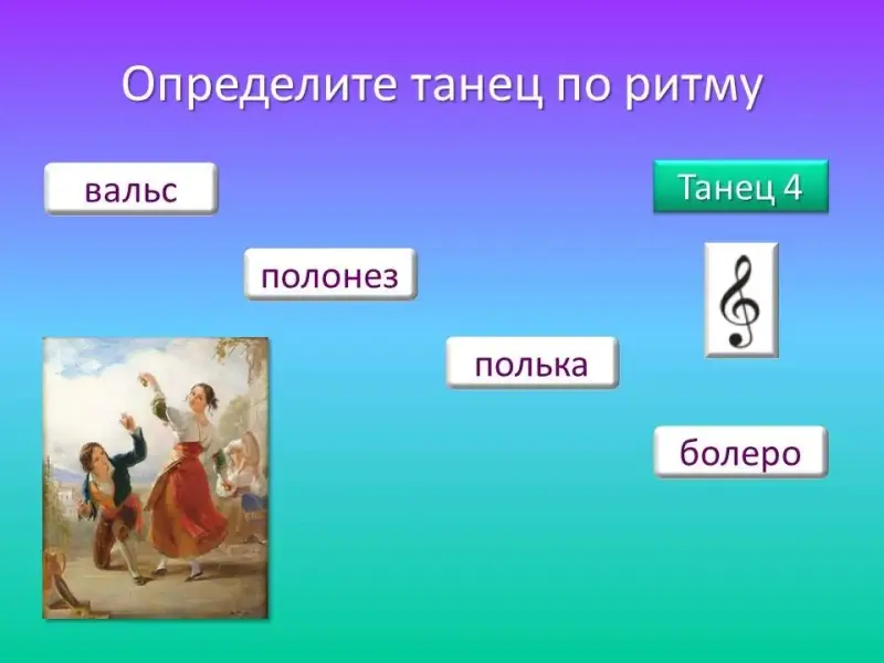 Учитель. Да. Чтобы хорошо танцевать необходимо чувство ритма. Предлагаю вам выполнить ряд заданий для развития чувства ритма.