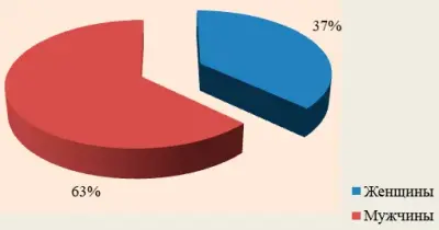 Диаграмма 3. Соотношение общего числа инфицированных ВИЧ по гендерным признакам