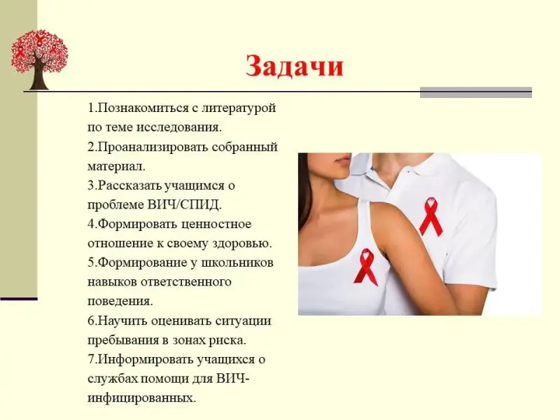 - Информировать учащихся о службах помощи для ВИЧ- инфицированных.
