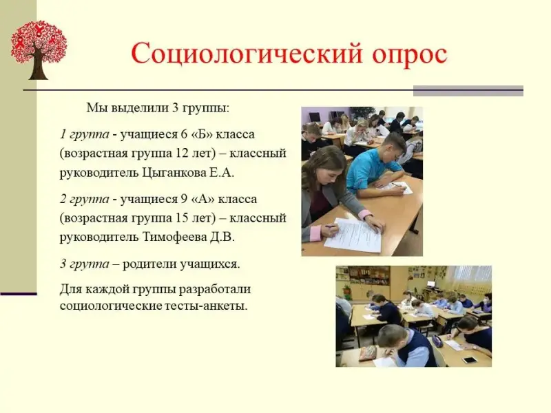 учащиеся МОУ «Гимназия №4» г.о. Электросталь, (возрастная группа 12 лет и 15 лет (6 класс и 9 класс)) и родители (возраст от 30 до 45 лет). |